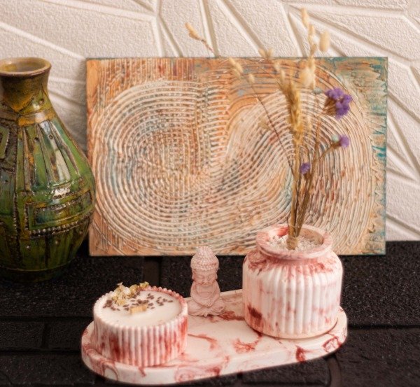 Bok de Tres Piezas Marmolado Rosado con Florero Deco..!!